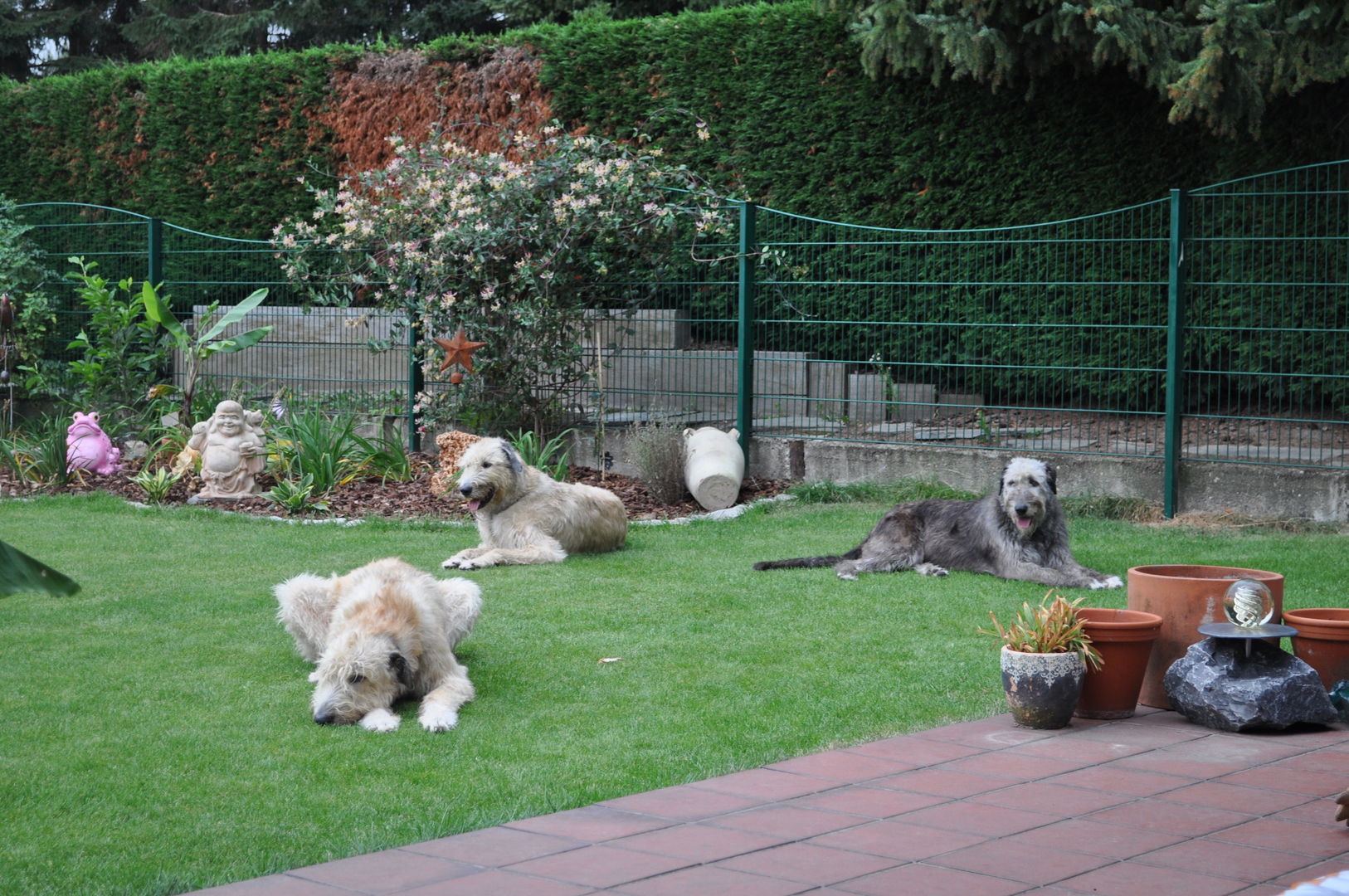 Im Jahr 2011 hatten wir uns durch Haus mit großem Garten räumlich so verändert, dass einem Irish Wolfhound nichts mehr im Wege stand. Wieder besuchten wir die Messe in Dortmund, diesmal anfang Mai. Wir trafen auf Jürgen Kuhless (Kennel "vom Alpetal"). Nach dem langen Gespräch mit ihm war klar: 'Wir möchten einen Wolfshund'. Nach etwas Recherche haben wir Jürgen's Internetseite gefunden und ihn einige Tage nach der Messe angerufen. Er und seine Frau Melitta haben uns für den folgenden Samstag eingeladen, um die Iren mal zu Hause zu erleben, und um Zeus, ein 15 Monate altes Scheidungskind, dass zu ihm zurück kam, kennen zu lernen. Wir wollten gerne einen etwas älteren Hund, da er mit Timmy in die Praxis für Physiotherapie mit zur Arbeit musste. Die Tage bis zu diesem Samstag zogen sich wie Gummi ;-).