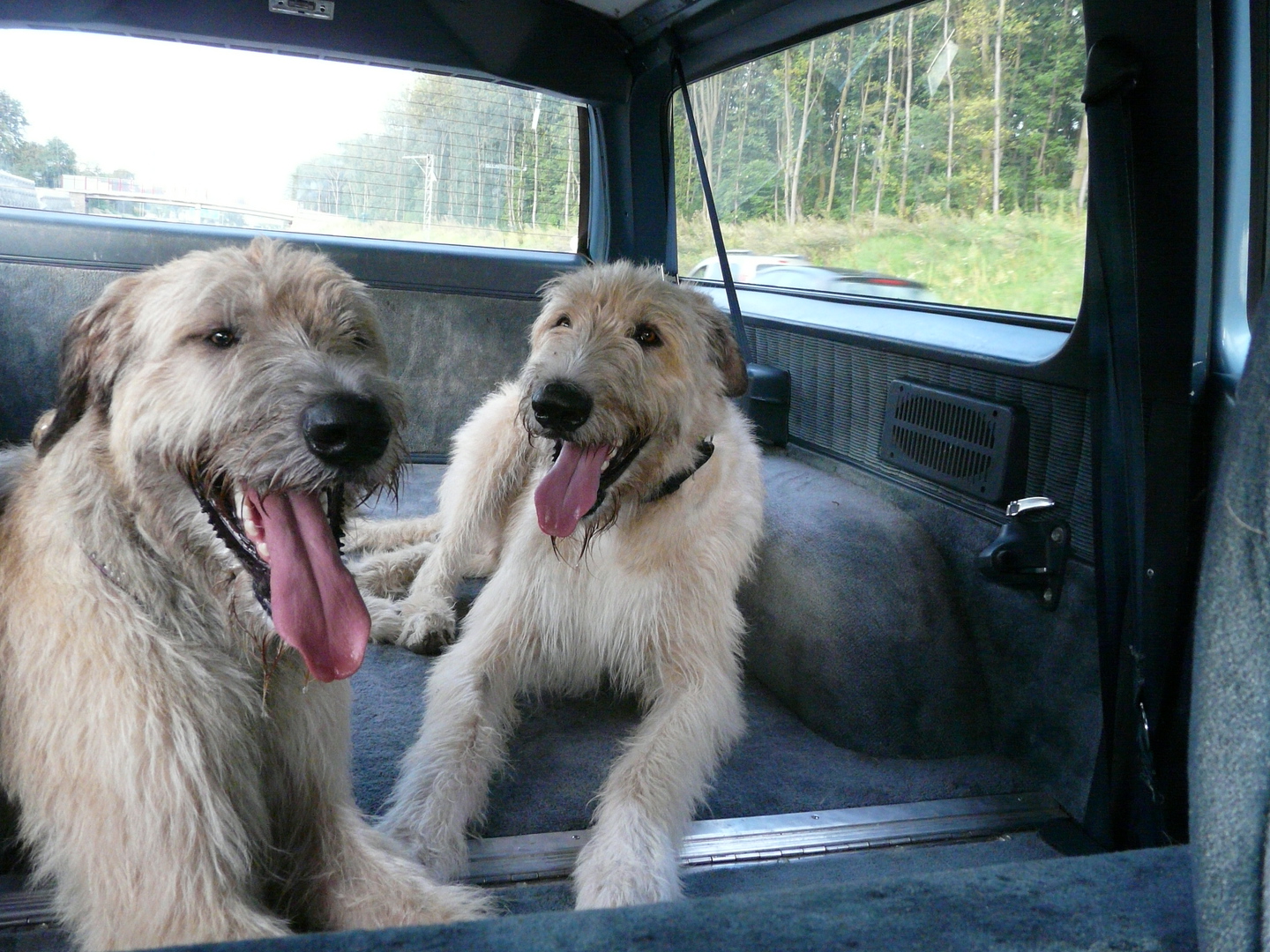 Ca. 2 Monate später waren wir wieder bei Jürgen und Melitta. Sie haben uns gezeigt, wie ein Irish Wolfhound für eine Ausstellung getrimmt wird. Unsere erste Ausstellung, die Jahresausstellung in Leverkusen, stand kurz bevor. Wie der Zufall es will kam ein Anruf. Ein Wolf muss sofort sein Zuhause verlassen. Ungefähr 1 Std. später kam Zar Paul I. an, 17 Monate alt und der Wurfbruder von Zeus. Die Beiden haben sich sofort verstanden und zusammen gespielt. Wir sind mit den beiden spazieren gegangen und knap 3 Stunden später lagen Zeus und Paul kuschelnd bei uns im Wohnzimmer. Sie waren sofort ein Herz und eine Seele, bis heute.