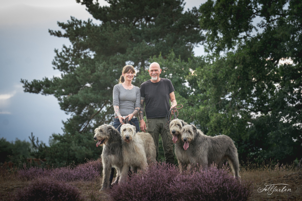 8 Jahre nach dem ersten Kontakt mit Bismark und Jürgen sind wir inzwischen stolze Besitzer von 4 wundervollen Iren, engagierte Mitglieder im IWC, haben die Zucht in Agriff genommen und neue Freunde kennengelernt, mit denen wir unser tolles Hobby, den Irish Wolfhound, teilen.